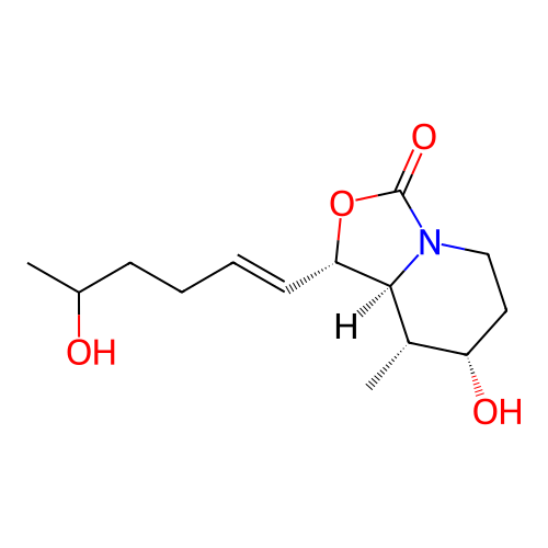 | InChI | InChI=1S/C14H23NO4/c1-9(16)5-3-4-6-12-13-10(2)11(17)7-8-15(13)14(18)19-12/h4,6,9-13,16-17H,3,5,7-8H2,1-2H3/b6-4+/t9?,10-,11-,12-,13-/m0/s1 |