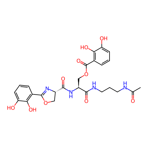 | SMILES | CC(=O)NCCCNC(=O)[C@H](COC(=O)C1=C(C(=CC=C1)O)O)NC(=O)[C@@H]2COC(=N2)C3=C(C(=CC=C3)O)O |