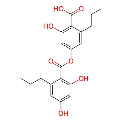 | SMILES | CCCC1=CC(=CC(=C1C(=O)OC2=CC(=C(C(=C2)CCC)C(=O)O)O)O)O |