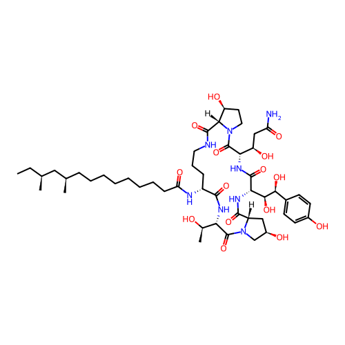 | SMILES | CC[C@H](C)C[C@H](C)CCCCCCCCC(=O)N[C@@H]1CCCNC(=O)[C@@H]2[C@H](CCN2C(=O)[C@@H](NC(=O)[C@@H](NC(=O)[C@@H]3C[C@H](CN3C(=O)[C@@H](NC1=O)[C@@H](C)O)O)[C@@H]([C@H](C4=CC=C(C=C4)O)O)O)[C@@H](CC(=O)N)O)O |