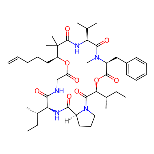 | SMILES | CC[C@H](C)[C@H]1C(=O)NCC(=O)O[C@H](C(C(=O)N[C@H](C(=O)N([C@H](C(=O)O[C@H](C(=O)N2CCC[C@H]2C(=O)N1)[C@@H](C)CC)CC3=CC=CC=C3)C)C(C)C)(C)C)CCCC=C |