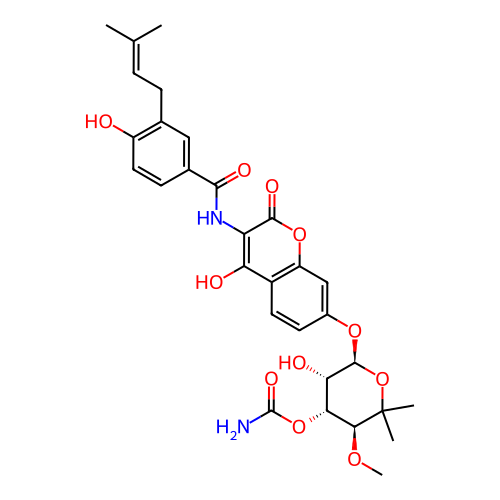 | SMILES | CC(=CCC1=C(C=CC(=C1)C(=O)NC2=C(C3=C(C=C(C=C3)O[C@@H]4[C@H]([C@H]([C@@H](C(O4)(C)C)OC)OC(=O)N)O)OC2=O)O)O)C |