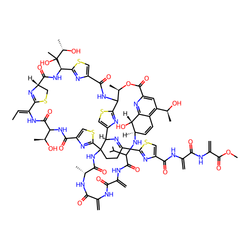 | SMILES | C/C=C\1/C2=N[C@@H](CS2)C(=O)N[C@H](C3=NC(=CS3)C(=O)NC4[C@H](OC(=O)C5=NC6=C(C=C[C@H]([C@@H]6O)NC(C(=O)NC(=C)C(=O)NC(=C)C(=O)N[C@@H](C(=O)NC7(CCC(=N[C@@H]7C8=CSC4=N8)C9=NC(=CS9)C(=O)NC(=C)C(=O)NC(=C)C(=O)OC)C2=NC(=CS2)C(=O)NC(C(=O)N1)[C@H](C)O)C)C(C)C)C(=C5)[C@H](C)O)C)C(C)([C@H](C)O)O |