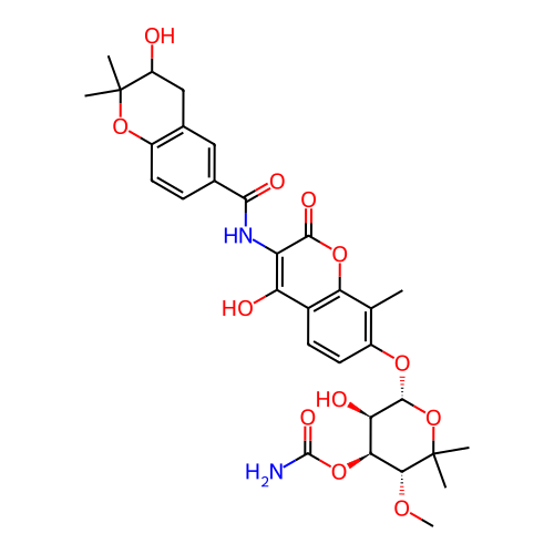 | SMILES | CC1=C(C=CC2=C1OC(=O)C(=C2O)NC(=O)C3=CC4=C(C=C3)OC(C(C4)O)(C)C)O[C@H]5[C@@H]([C@@H]([C@H](C(O5)(C)C)OC)OC(=O)N)O |