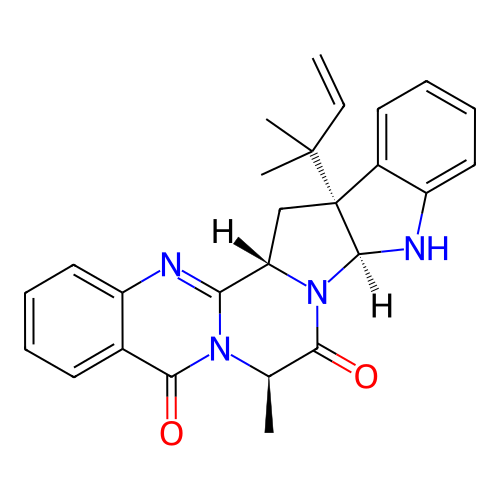 | SMILES | C[C@@H]1C(=O)N2[C@@H](C[C@@]3([C@H]2NC4=CC=CC=C43)C(C)(C)C=C)C5=NC6=CC=CC=C6C(=O)N15 |