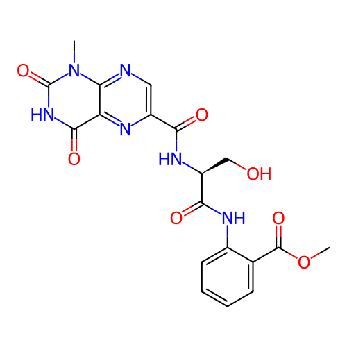 | SMILES | CN1C2=NC=C(N=C2C(=O)NC1=O)C(=O)N[C@@H](CO)C(=O)NC3=CC=CC=C3C(=O)OC |