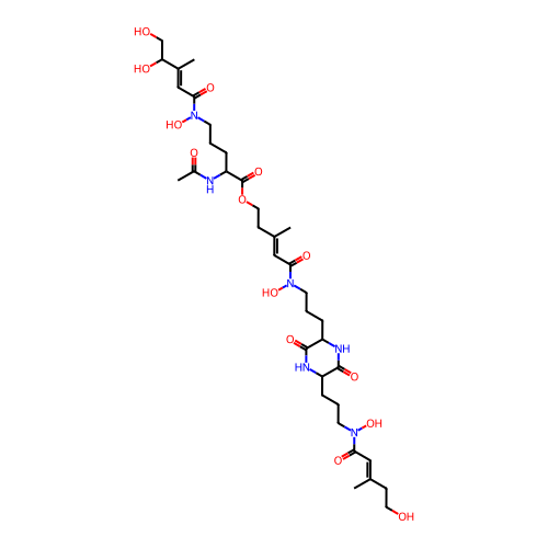 | SMILES | C/C(=C\C(=O)N(CCCC1C(=O)NC(C(=O)N1)CCCN(C(=O)/C=C(\C)/CCOC(=O)C(CCCN(C(=O)/C=C(\C)/C(CO)O)O)NC(=O)C)O)O)/CCO |