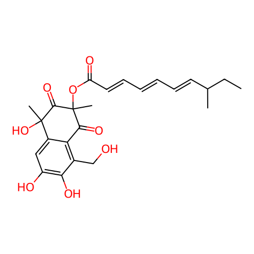 | SMILES | CCC(C)/C=C/C=C/C=C/C(=O)OC1(C(=O)C2=C(C(=C(C=C2C(C1=O)(C)O)O)O)CO)C |