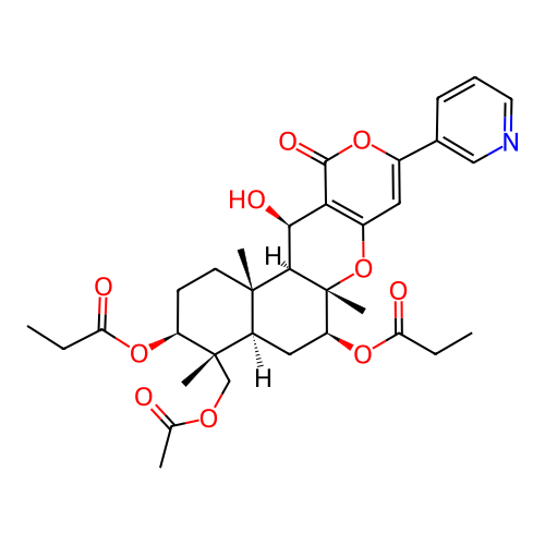 | InChI | InChI=1S/C33H41NO10/c1-7-25(36)42-23-11-12-31(4)22(32(23,5)17-40-18(3)35)15-24(43-26(37)8-2)33(6)29(31)28(38)27-21(44-33)14-20(41-30(27)39)19-10-9-13-34-16-19/h9-10,13-14,16,22-24,28-29,38H,7-8,11-12,15,17H2,1-6H3/t22-,23+,24+,28+,29-,31+,32+,33-/m1/s1 |