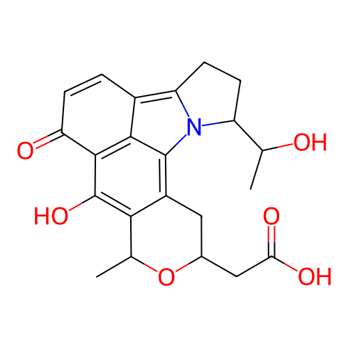 | SMILES | CC1C2=C(C3=C4C(=C5CCC(N5C4=C2CC(O1)CC(=O)O)C(C)O)C=CC3=O)O |
