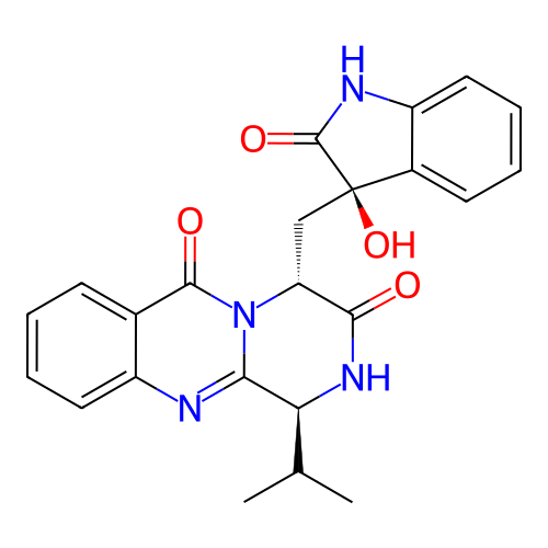 | SMILES | CC(C)[C@H]1C2=NC3=CC=CC=C3C(=O)N2[C@@H](C(=O)N1)C[C@]4(C5=CC=CC=C5NC4=O)O |