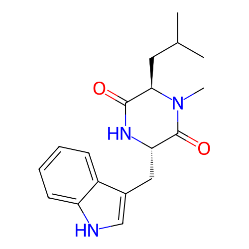 | InChI | InChI=1S/C18H23N3O2/c1-11(2)8-16-17(22)20-15(18(23)21(16)3)9-12-10-19-14-7-5-4-6-13(12)14/h4-7,10-11,15-16,19H,8-9H2,1-3H3,(H,20,22)/t15-,16+/m0/s1 |