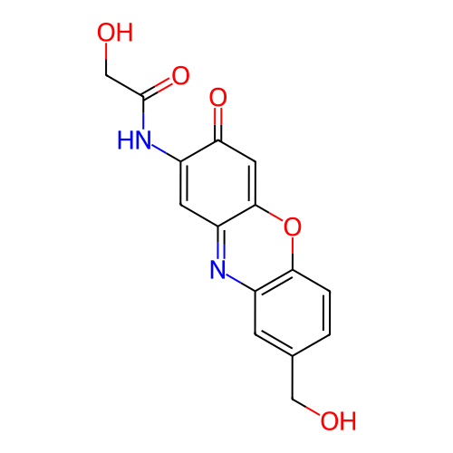 | SMILES | C1=CC2=C(C=C1CO)N=C3C=C(C(=O)C=C3O2)NC(=O)CO |