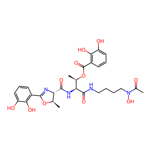 | SMILES | C[C@@H]1[C@H](N=C(O1)C2=C(C(=CC=C2)O)O)C(=O)N[C@@H]([C@@H](C)OC(=O)C3=C(C(=CC=C3)O)O)C(=O)NCCCCN(C(=O)C)O |