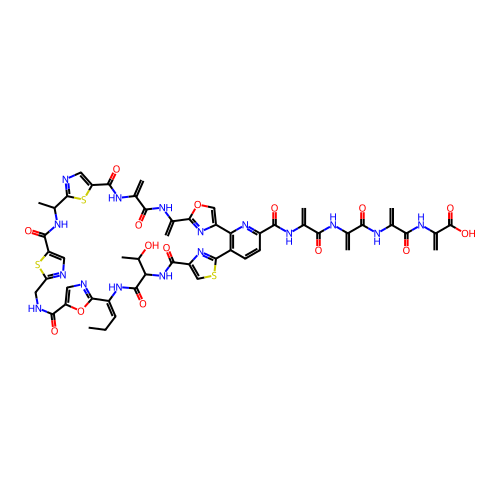 | SMILES | CCC=C1C2=NC=C(O2)C(=O)NCC3=NC=C(S3)C(=O)NC(C4=NC=C(S4)C(=O)NC(=C)C(=O)NC(=C)C5=NC(=CO5)C6=C(C=CC(=N6)C(=O)NC(=C)C(=O)NC(=C)C(=O)NC(=C)C(=O)NC(=C)C(=O)O)C7=NC(=CS7)C(=O)NC(C(=O)N1)C(C)O)C |