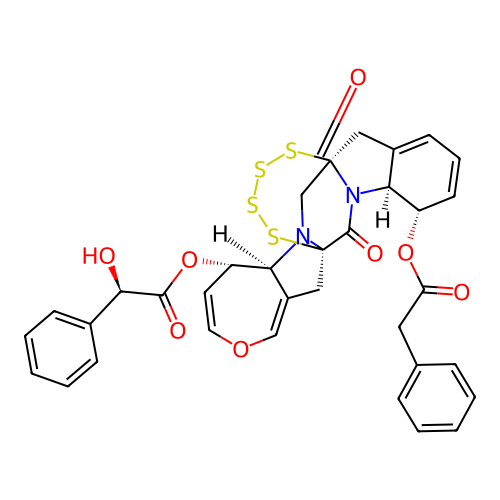 | SMILES | C1C2=CC=C[C@@H]([C@H]2N3[C@]14C(=O)N5[C@@H]6[C@H](C=COC=C6C[C@]5(C3=O)SSSS4)OC(=O)[C@@H](C7=CC=CC=C7)O)OC(=O)CC8=CC=CC=C8 |