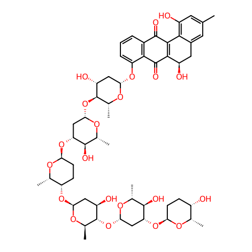 | SMILES | C[C@H]1[C@H](CC[C@@H](O1)O[C@@H]2C[C@@H](O[C@@H]([C@H]2O)C)O[C@@H]3[C@H](O[C@H](C[C@H]3O)O[C@H]4CC[C@@H](O[C@H]4C)O[C@@H]5C[C@@H](O[C@@H]([C@H]5O)C)O[C@@H]6[C@H](O[C@H](C[C@H]6O)OC7=CC=CC8=C7C(=O)C9=C(C8=O)C1=C(C=C(C=C1C[C@H]9O)C)O)C)C)O |