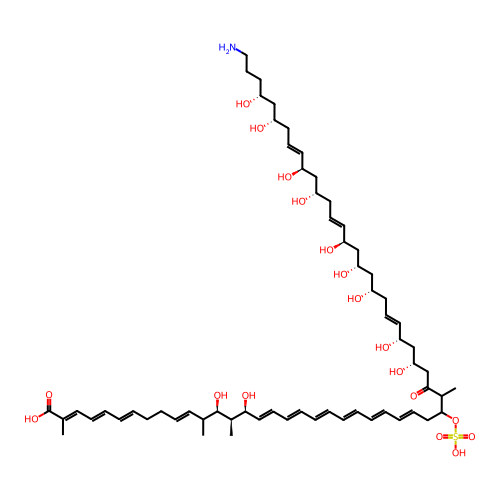 | SMILES | C[C@H]([C@H](/C=C/C=C/C=C/C=C/C=C/C=C/CC(C(C)C(=O)C[C@@H](C[C@@H](/C=C/C[C@@H](C[C@@H](C[C@H](/C=C/C[C@@H](C[C@H](/C=C/C[C@@H](C[C@@H](CCCN)O)O)O)O)O)O)O)O)O)OS(=O)(=O)O)O)[C@@H](C(C)/C=C/CC/C=C/C=C/C=C(\C)/C(=O)O)O |