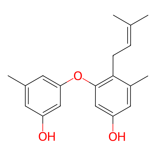 | InChI | InChI=1S/C19H22O3/c1-12(2)5-6-18-14(4)9-16(21)11-19(18)22-17-8-13(3)7-15(20)10-17/h5,7-11,20-21H,6H2,1-4H3 |