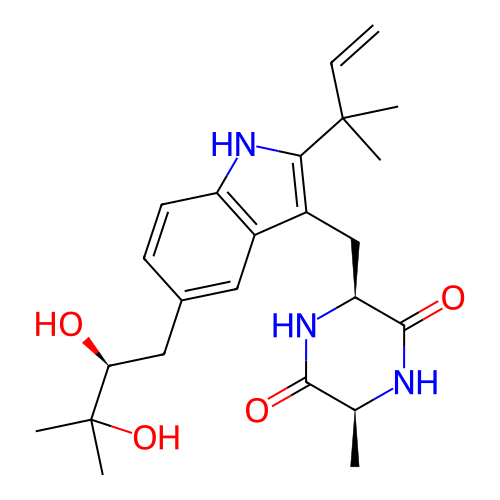 | SMILES | C[C@H]1C(=O)N[C@H](C(=O)N1)CC2=C(NC3=C2C=C(C=C3)C[C@@H](C(C)(C)O)O)C(C)(C)C=C |