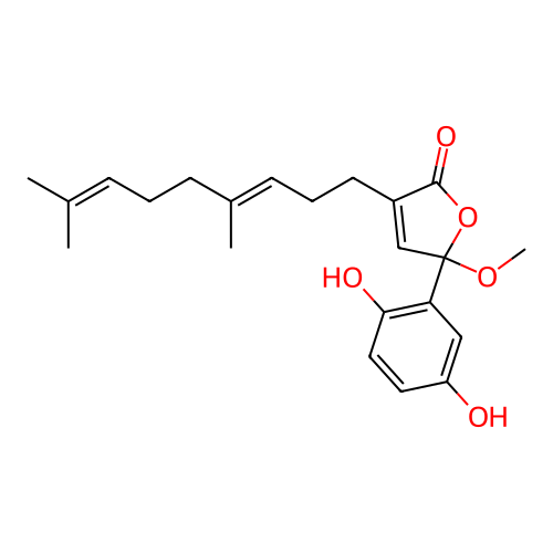 | InChI | InChI=1S/C22H28O5/c1-15(2)7-5-8-16(3)9-6-10-17-14-22(26-4,27-21(17)25)19-13-18(23)11-12-20(19)24/h7,9,11-14,23-24H,5-6,8,10H2,1-4H3/b16-9+ |