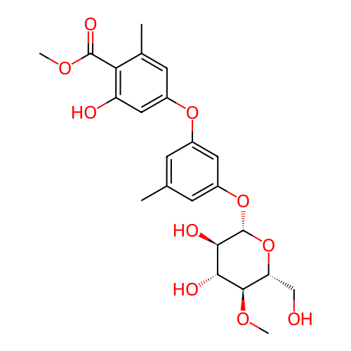 | SMILES | CC1=CC(=CC(=C1)O[C@H]2[C@@H]([C@H]([C@@H]([C@H](O2)CO)OC)O)O)OC3=CC(=C(C(=C3)C)C(=O)OC)O |