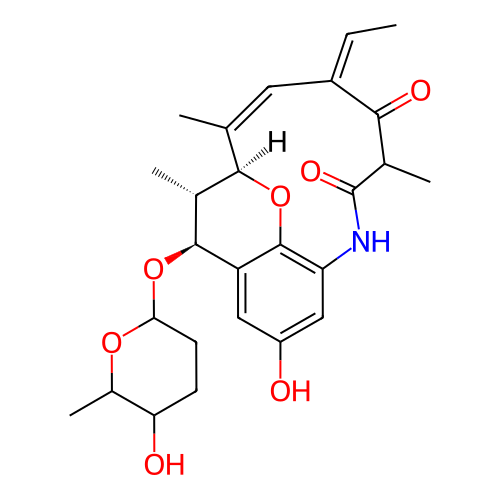 | InChI | InChI=1S/C26H33NO7/c1-6-16-9-12(2)23-14(4)24(33-21-8-7-20(29)15(5)32-21)18-10-17(28)11-19(25(18)34-23)27-26(31)13(3)22(16)30/h6,9-11,13-15,20-21,23-24,28-29H,7-8H2,1-5H3,(H,27,31)/b12-9-,16-6-/t13?,14-,15?,20?,21?,23-,24+/m1/s1 |