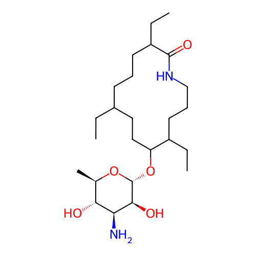 | SMILES | CCC1CCCC(C(=O)NCCCC(C(CC1)O[C@@H]2[C@H]([C@H]([C@@H]([C@H](O2)C)O)N)O)CC)CC |