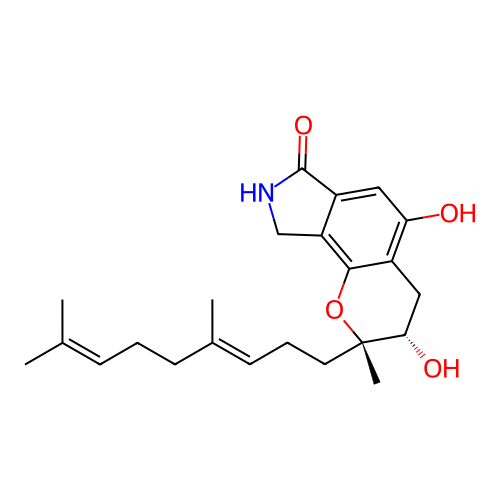 | InChI | InChI=1S/C23H31NO4/c1-14(2)7-5-8-15(3)9-6-10-23(4)20(26)12-17-19(25)11-16-18(21(17)28-23)13-24-22(16)27/h7,9,11,20,25-26H,5-6,8,10,12-13H2,1-4H3,(H,24,27)/t20-,23-/m0/s1 |