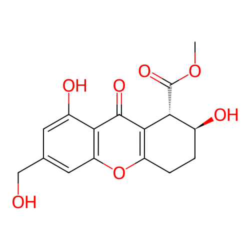 | InChI | InChI=1S/C16H16O7/c1-22-16(21)13-8(18)2-3-10-14(13)15(20)12-9(19)4-7(6-17)5-11(12)23-10/h4-5,8,13,17-19H,2-3,6H2,1H3/t8-,13+/m0/s1 |