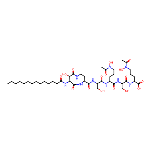 | SMILES | CCCCCCCCCCCCCC(=O)NC1C(C(=O)NCCC(NC1=O)C(=O)NC(CO)C(=O)NC(CCCN(C(=O)C)O)C(=O)NC(CO)C(=O)NC(CCCN(C(=O)C)O)C(=O)O)O |