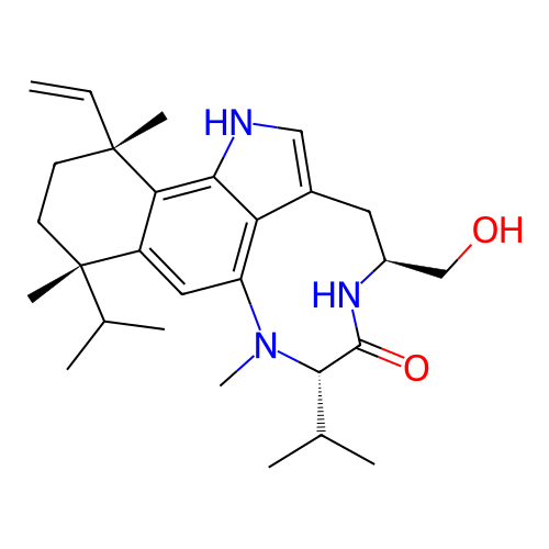 | SMILES | CC(C)[C@H]1C(=O)N[C@@H](CC2=CNC3=C4C(=CC(=C23)N1C)[C@](CC[C@]4(C)C=C)(C)C(C)C)CO |