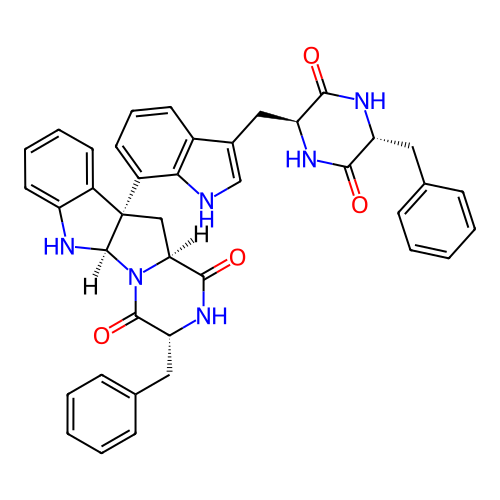 | SMILES | C1[C@H]2C(=O)N[C@@H](C(=O)N2[C@@H]3[C@]1(C4=CC=CC=C4N3)C5=CC=CC6=C5NC=C6C[C@H]7C(=O)N[C@@H](C(=O)N7)CC8=CC=CC=C8)CC9=CC=CC=C9 |