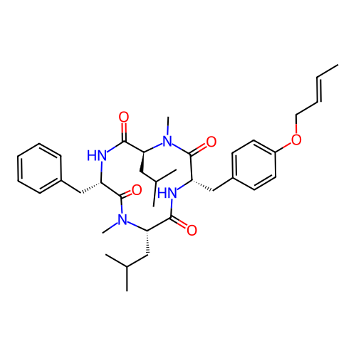 | InChI | InChI=1S/C36H50N4O5/c1-8-9-19-45-28-17-15-27(16-18-28)23-30-36(44)40(7)31(20-24(2)3)33(41)37-29(22-26-13-11-10-12-14-26)35(43)39(6)32(21-25(4)5)34(42)38-30/h8-18,24-25,29-32H,19-23H2,1-7H3,(H,37,41)(H,38,42)/t29-,30-,31-,32-/m0/s1 |