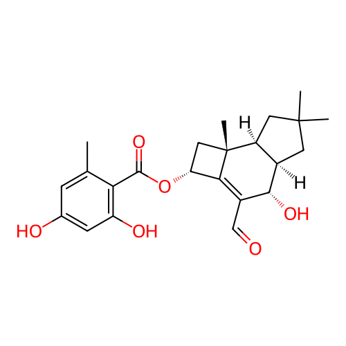 | InChI | InChI=1S/C23H28O6/c1-11-5-12(25)6-16(26)18(11)21(28)29-17-9-23(4)15-8-22(2,3)7-13(15)20(27)14(10-24)19(17)23/h5-6,10,13,15,17,20,25-27H,7-9H2,1-4H3/t13-,15+,17-,20+,23-/m1/s1 |