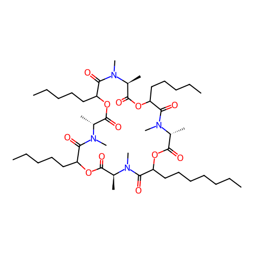 | SMILES | CCCCCCCC1OC(=O)[C@@H](C)N(C)C(=O)C(CCCCC)OC(=O)[C@H](C)N(C)C(=O)C(CCCCC)OC(=O)[C@@H](C)N(C)C(=O)C(CCCCC)OC(=O)[C@H](C)N(C)C1=O |