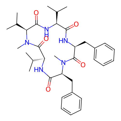 | SMILES | CC(C)[C@H]1C(=O)N[C@H](C(=O)N([C@H](C(=O)N[C@H](C(=O)N([C@H](C(=O)N1)C(C)C)C)C(C)C)CC2=CC=CC=C2)C)CC3=CC=CC=C3 |