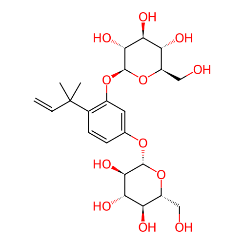 | SMILES | CC(C)(C=C)C1=C(C=C(C=C1)O[C@H]2[C@@H]([C@H]([C@@H]([C@H](O2)CO)O)O)O)O[C@H]3[C@@H]([C@H]([C@@H]([C@H](O3)CO)O)O)O |