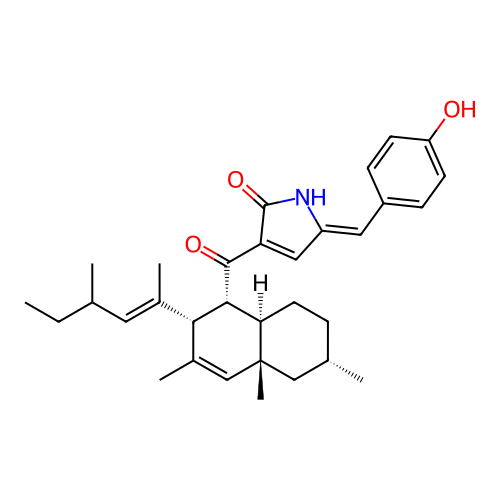 | InChI | InChI=1S/C32H41NO3/c1-7-19(2)14-21(4)28-22(5)18-32(6)17-20(3)8-13-27(32)29(28)30(35)26-16-24(33-31(26)36)15-23-9-11-25(34)12-10-23/h9-12,14-16,18-20,27-29,34H,7-8,13,17H2,1-6H3,(H,33,36)/b21-14+,24-15-/t19?,20-,27+,28-,29+,32+/m0/s1 |