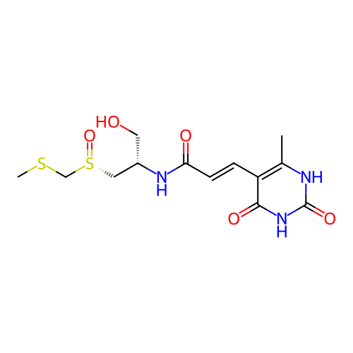 | SMILES | CC1=C(C(=O)NC(=O)N1)/C=C/C(=O)N[C@@H](CO)C[S@@](=O)CSC |