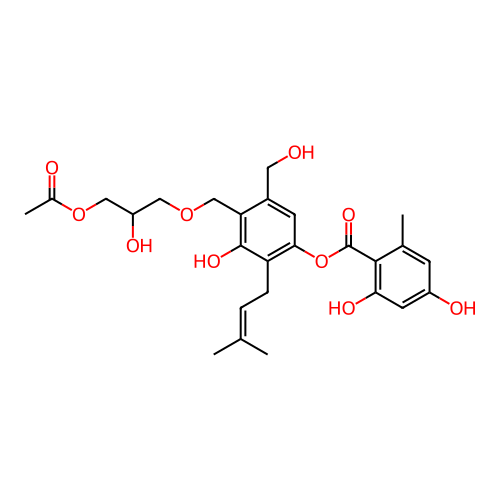| SMILES | CC1=CC(=CC(=C1C(=O)OC2=C(C(=C(C(=C2)CO)COCC(COC(=O)C)O)O)CC=C(C)C)O)O |