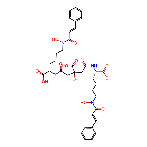 | SMILES | C1=CC=C(C=C1)/C=C/C(=O)N(O)CCCC[C@H](NC(=O)CC(O)(C(=O)O)CC(=O)N[C@H](C(=O)O)CCCCN(O)C(=O)/C=C/C2=CC=CC=C2)C(=O)O |
