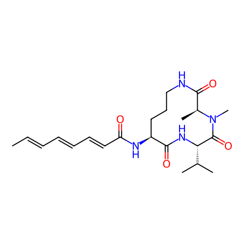 | SMILES | C/C=C/C=C/C=C/C(=O)N[C@H]1CCCNC(=O)[C@@H](N(C(=O)[C@@H](NC1=O)C(C)C)C)C |