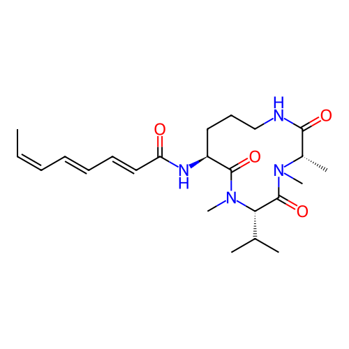 | SMILES | C/C=C\C=C\C=C\C(=O)N[C@H]1CCCNC(=O)[C@@H](N(C(=O)[C@@H](N(C1=O)C)C(C)C)C)C |