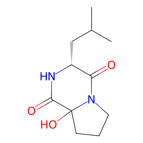 | SMILES | CC(C)C[C@@H]1C(=O)N2CCCC2(C(=O)N1)O |