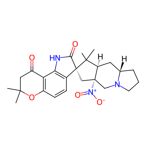 | SMILES | CC1(C)CC(=O)C2=C(C=CC3=C2NC(=O)[C@]32C[C@]3([N+](=O)[O-])CN4CCC[C@H]4C[C@@H]3C2(C)C)O1 |
