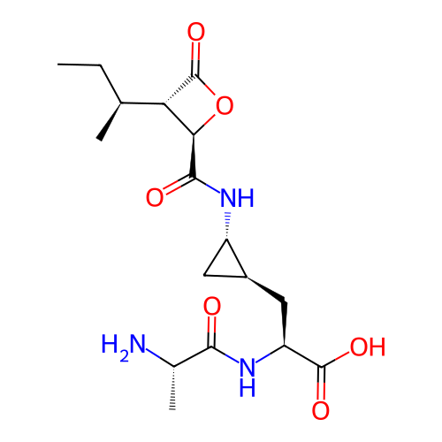 | SMILES | CC[C@H](C)[C@H]1[C@@H](OC1=O)C(=O)N[C@H]2C[C@@H]2C[C@@H](C(=O)O)NC(=O)[C@H](C)N |