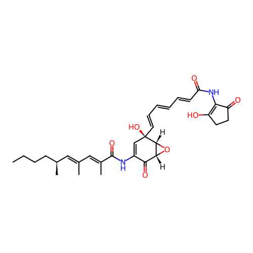 | SMILES | CCCC[C@H](C)/C=C(\C)/C=C(\C)/C(=O)NC1=C[C@@]([C@H]2[C@@H](C1=O)O2)(/C=C/C=C/C=C/C(=O)NC3=C(CCC3=O)O)O |