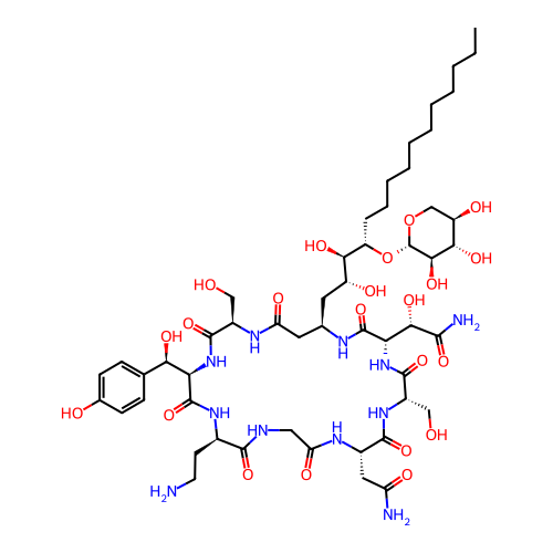 | SMILES | CCCCCCCCCCC[C@@H]([C@@H]([C@@H](C[C@@H]1CC(=O)N[C@@H](C(=O)N[C@@H](C(=O)N[C@@H](C(=O)NCC(=O)N[C@H](C(=O)N[C@H](C(=O)N[C@H](C(=O)N1)[C@@H](C(=O)N)O)CO)CC(=O)N)CCN)[C@@H](C2=CC=C(C=C2)O)O)CO)O)O)O[C@H]3[C@@H]([C@H]([C@@H](CO3)O)O)O |