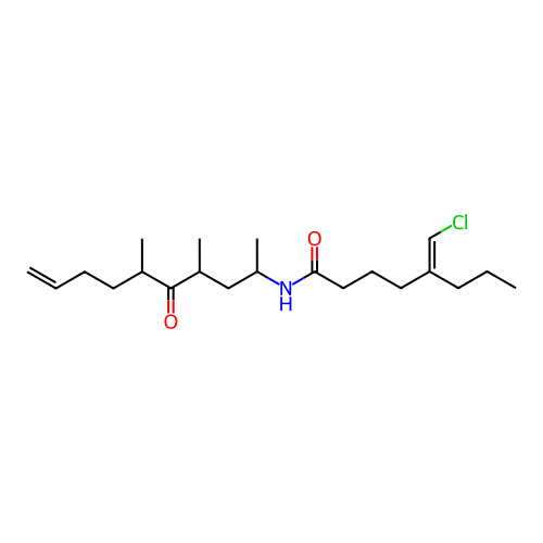 | SMILES | CCC/C(=C\Cl)/CCCC(=O)NC(C)CC(C)C(=O)C(C)CCC=C |